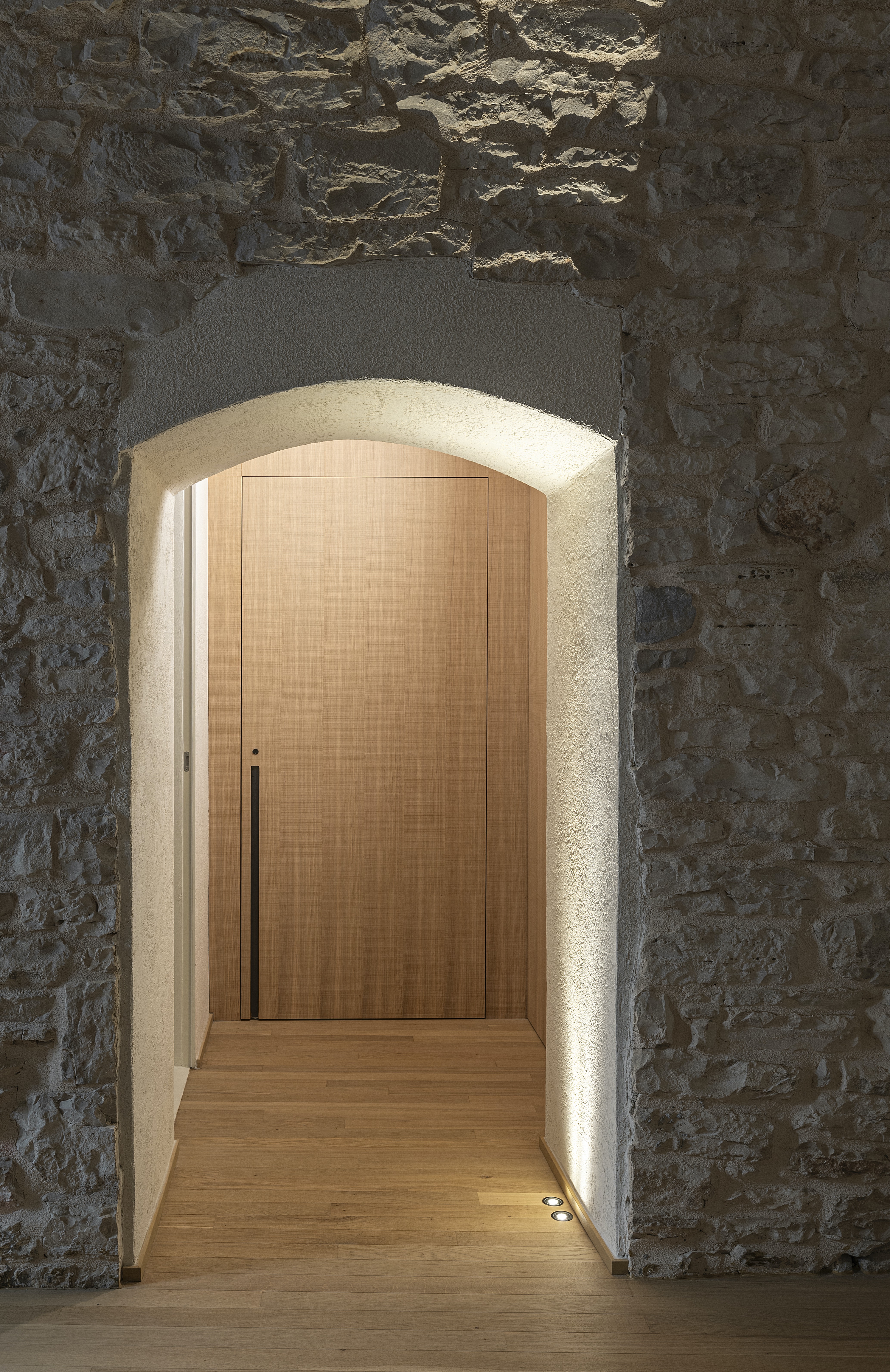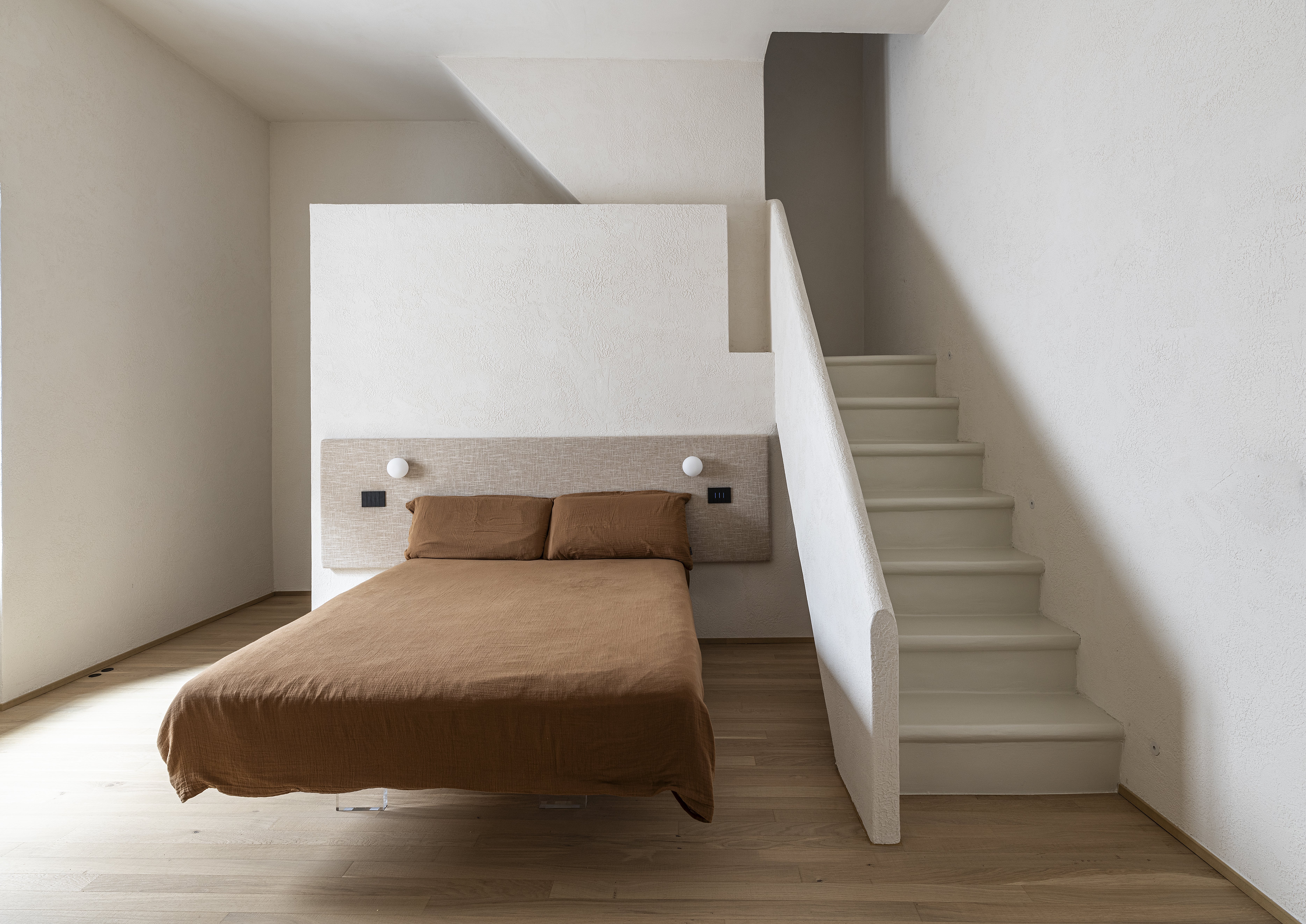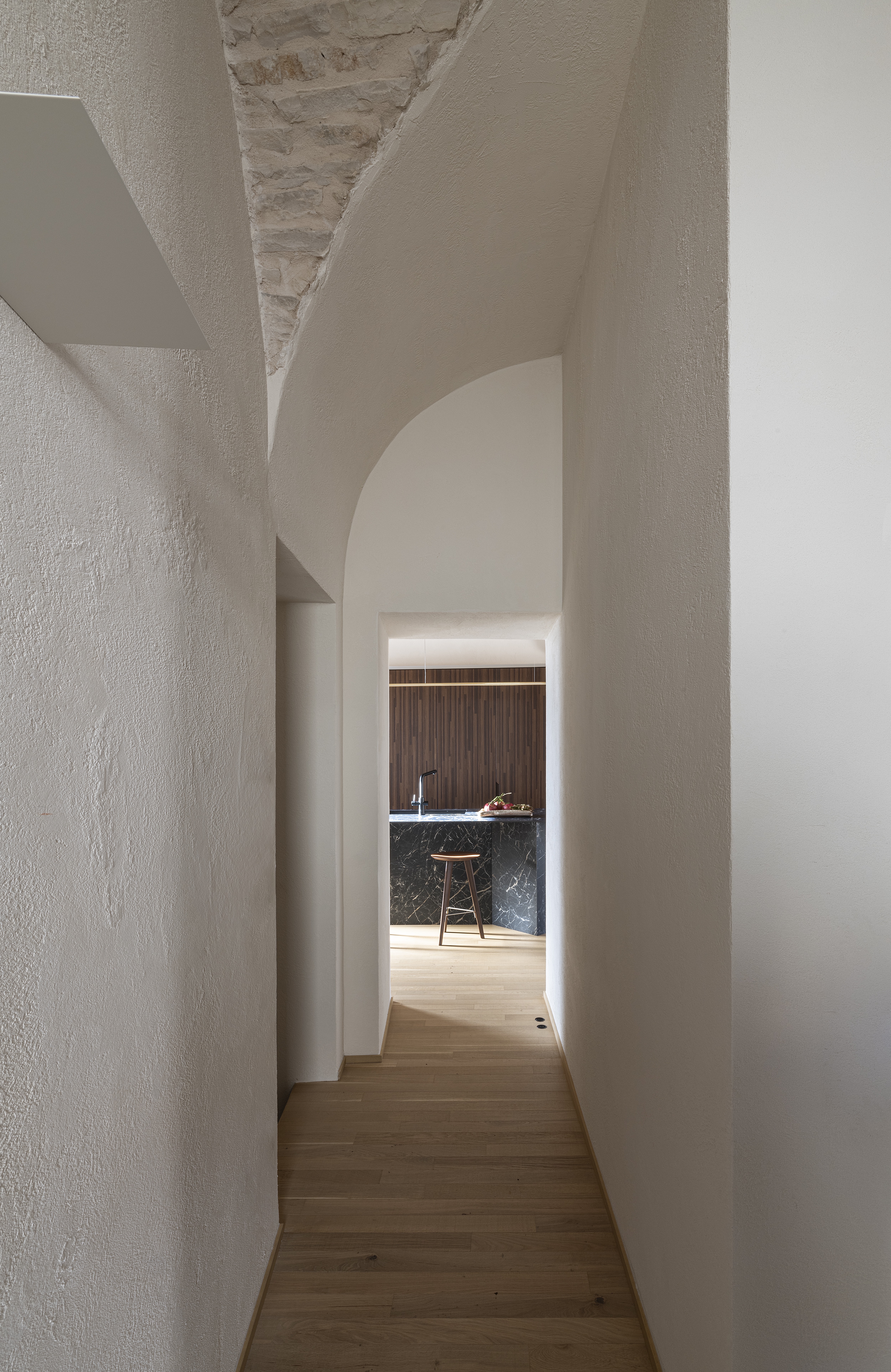 Ogni passaggio tra i livelli è pensato come un percorso, dove materia e luce accompagnano il corpo e orientano lo sguardo.